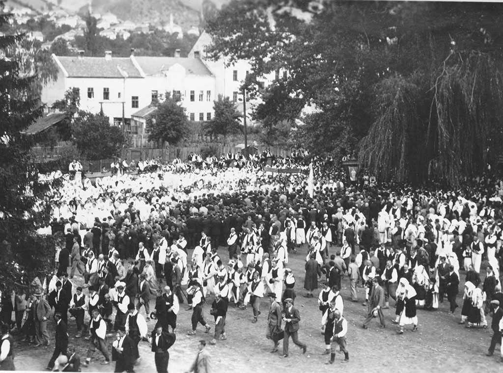 Dana 9. listopada 1932. u Travniku je održana velebna procesija na kojoj je sudjelovao i nadbiskup Ivan ev. Šarić. Fotografija prikazuje ljude u narodnim nošnjama poslije procesije.