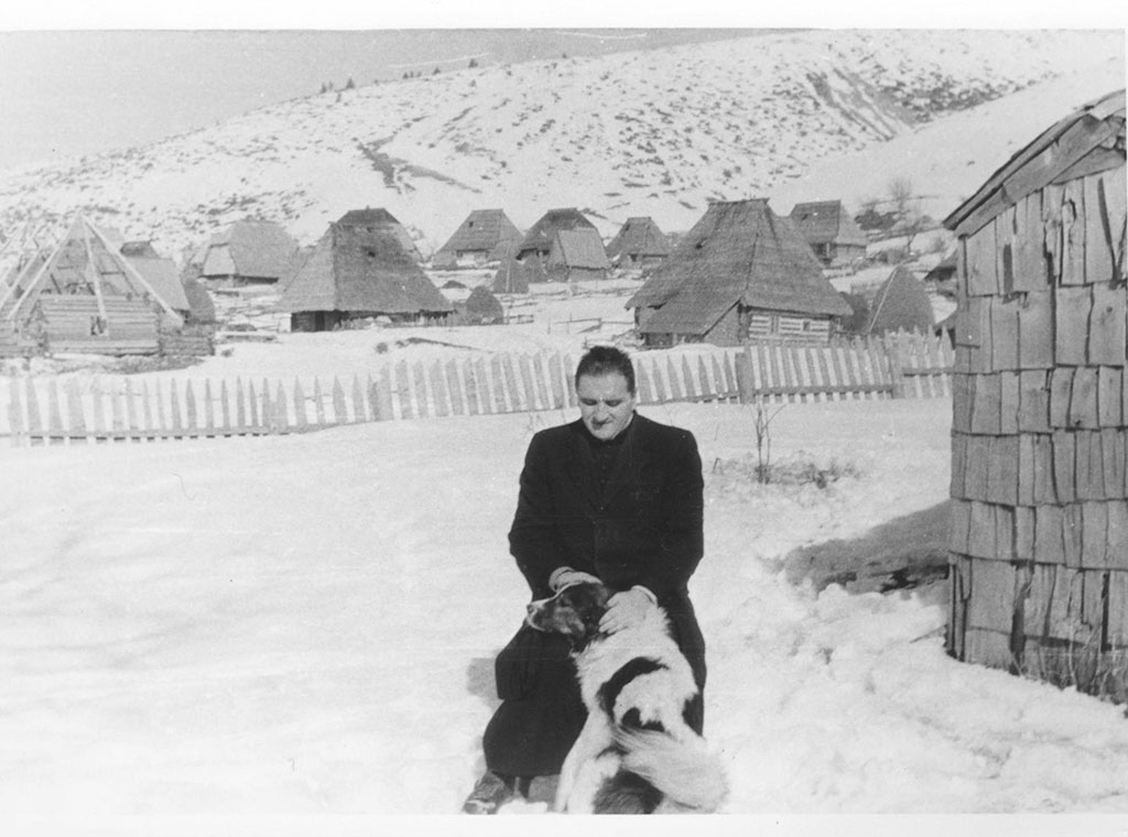 Na fotografiji: župnik Jablanović u Rastičevu pred župnom kućom godine 1955./1956., a u pozadini se pruža pogled na selo.