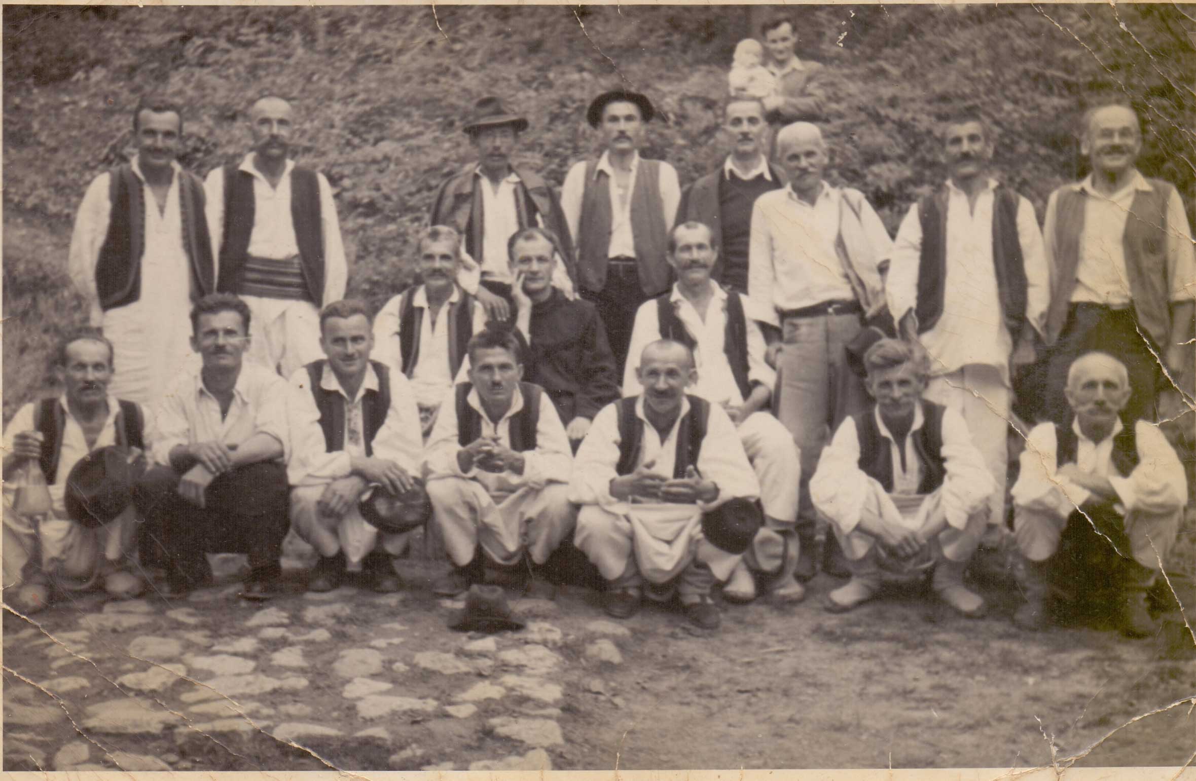U gornjem redu prvi s lijeve strane je Jozo Tadić, prakaratur sela Tatar Budžak... Zanimljivo i neobično da su svi na slici osim župnika brkati.