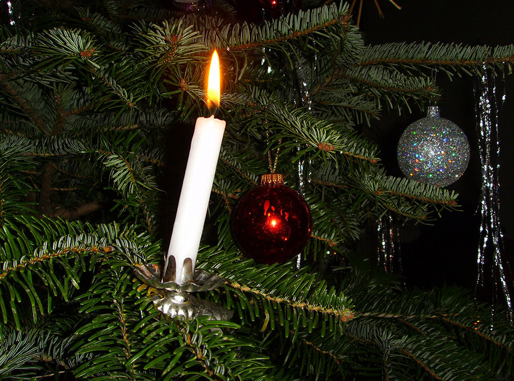 Kada je kićenje završeno, a mi večerali, došao je trenutak paljenja svijeća i sjedanja pored bora, uživanja u posebnom prizoru. Prethodno je tetka ugasila sijalicu u sobi, tako da je u polutami jelka izgledala veličanstvena, bajkovita. Svijeće su titrale, njihovo je svjetlo odsijevalo na nakitu posutom staklenom prašinom, zlatni i srebreni bomboni su povećavali magiju. Bomboni, bomboni… ja sam samo u njih gledao, na njihovu slast mislio. A nije ni čudo. Bio sam ih željan.