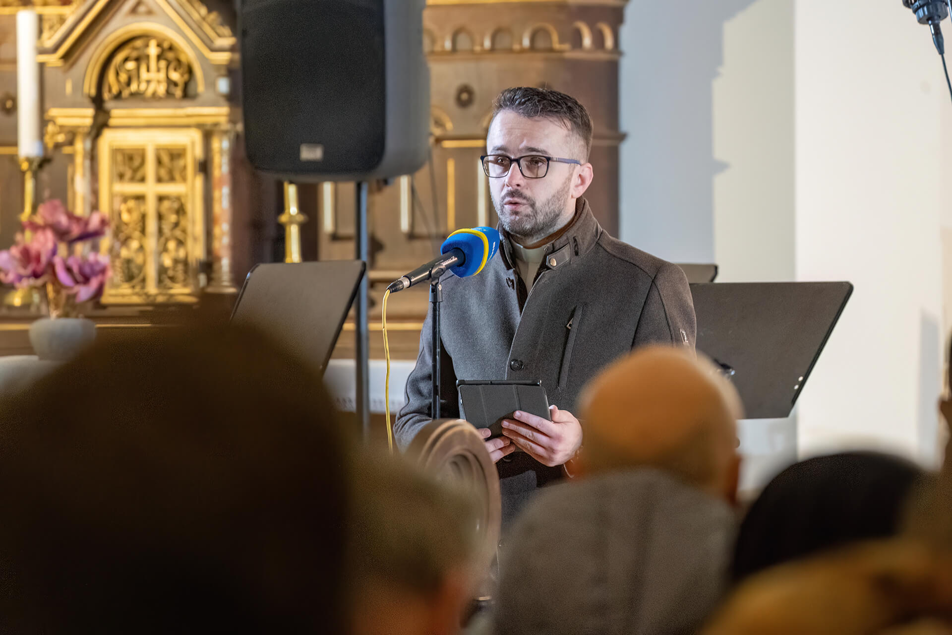 Prije samog koncerta prisutne, njih oko 200 među kojima su bili predstavnici javnog, kulturnog i političkog života, u svojstvu domaćina pozdravio je župnik vlč. Dražen Kustura, glasnogovornik Vrhbosanske nadbiskupije. Nakon izraza dobrodošlice prisutne je podsjetio kako je vrijeme došašća razdoblje budnog iščekivanja, sabranosti i nutarnje pripreme za dolazak Isusa Krista. „Advent nas uvijek iznova poziva da zastanemo, utišamo žurbu svakodnevice i otvorimo srce svjetlu koje dolazi. U ovom razdoblju, glazba na poseban način postaje putokaz: ona nas umiruje, nadahnjuje i vraća onome bitnom. Prije nekoliko dana u Vatikanu održan je jedan koncert na kojemu je prisutan bio i papa Leon XIV. koji je pozdravljajući okupljene, među ostalim, kazao: 'Glazba je poput mosta koji nas vodi k Bogu. Ona može prenijeti osjećaje, emocije i najdublje pokrete duše, uzdižući ih kao ljestve između zemlje i neba.' Ove Papine riječi dodatni su poticaj da kroz ciklus koncerata KoncertiDA, koji je, hvala Bogu, ušao u svoju četvrtu sezonu mi kao župa ponudimo kvalitetan sadržaj svim ljudima dobre volje koji kroz glazbu prepoznaju ljepotu Božjega stvaranja“, poručio je, među ostalim vlč. Kustura, te je zahvalio prijateljima i sponzorima projekta: Federalnom ministarstvu raseljenih osoba i izbjeglica, JP BH Pošta te medijskim pokroviteljima: Katoličkom tjedniku, portalu Nedjelja.ba i BHRT-u.