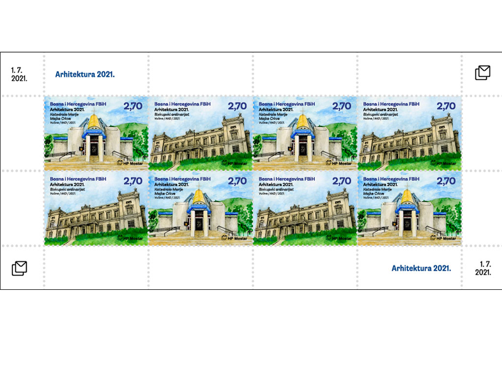 Hrvatska pošta (HP) Mostar tiskala je dvije prigodne poštanske marke "Arhitektura 2021." s motivima zgrade Biskupskog ordinarijata i katedrale Marije Majke Crkve u Mostaru, zdanja koje daju poseban pečat gradu na Neretvi.