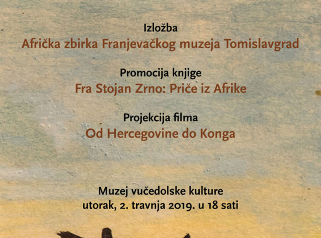 Gostujuća izložba Franjevačkog muzeja Tomislavgrad pod nazivom „Afrička zbirka Franjevačkog muzeja Tomislavgrad“ bit će održana 2. travnja u 18.00 u Muzeju vučedolske kulture kod Vukovara.