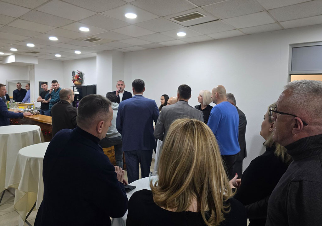 Nazočnih 80-ak gostiju pozdravio je i izrekao dobrodošlicu predsjednik HKDD-a Ante Prskalo koji je izrazio radost što je ovo Društvo u mogućnosti još od 1991. odrzavati božićne domjenke, kao tradicionalno mjesto i vrijeme okupljanja brojnih Hrvata i ostalih ljudi dobre volje koji žive i rade u glavnom gradu BiH. Između ostalih pozdrav je uputio predstavnicima Hrvatskog veleposlanstva u BiH te različitih razina bh. vlasti kao i svim članovima HKDD-a.