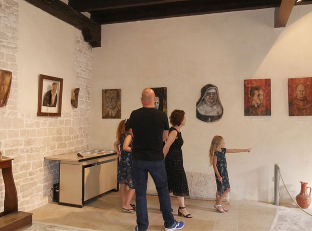 Riječ je o višegodišnjem projektu kojim javnost ima svake godine prigodu upoznati hrvatske svece i blaženike kroz nadahnuće raznih hrvatskih likovnih umjetnika. Ove godine je Božje ugodnike portretima u drvu prikazala mlada splitska umjetnica Karin Grenc. O izložbi su govorili gvardijan samostan o. Đuro Hontić, koordinator projekta mons. Antun Sente ml., a pročitan je i ulomak stručne umjetničke analize likovnog kritičara Stanka Špoljarića. Izložbu je otvorio novi pulski gradonačelnik Filip Zoričić.
