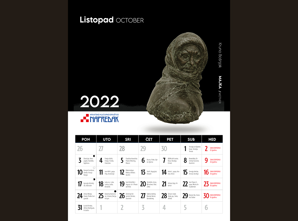 Iz tiska je izašao „Napretkov“ zidni kalendar za 2022. Tema kalendara su skulpture iz zbirke umjetnina sa svojim stalnim postavom pod nazivom "Majka“ iz Galerije „Majka“, a koja se nalazi u sklopu franjevačkog samostana Sv. Ante Padovanskoga na Humcu u Ljubuškom.