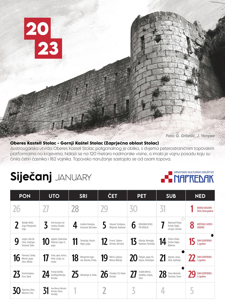 Iz tiska je izišao tradicionalni katolički imendanski "Napretkov" zidni kalendar za 2023. čija su tema austrougarske utvrde u Bosni i Hercegovini.