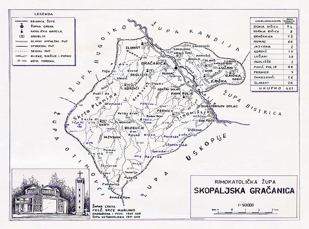 Monografija je najvećim dijelom nastala temeljem matičnih knjiga rimokatoličkih župâ: Skopje (župnik koje je do 1802. boravio na Crkvinama u Voljicu kod Gornjeg Vakufa), Uskoplja, Otinovci (župnik koje obitava u istoimenome mjestu na Kupreškoj visoravni), Skopje Gornje (župnik koje od 1806. boravi u Zaglavici koja je sada sastavni dio Gornjeg Vakufa), Uskoplja, Malo Selo (čiji župnik boravi u istoimenome mjestu koje je sada dio grada Bugojna), Golo Brdo, Kandija (župnik koje obitava u Kandiji kod Bugojna), Rastovo odnosno Rostovo (sjedište čijeg župnika je u istoimenome mjestu kod Novog Travnika), Skopaljska Gračanica (središte koje je na Humcu kod Bugojna), te temeljem arhivske građe iz Franjevačkog samostana Svetoga Duha u Fojnici, kao i Vrhbosanske nadbiskupije u Sarajevu, stoji na mrežnoj stranici župe Skopaljska Gračanica.
