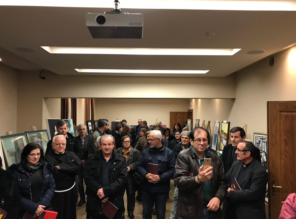 U prepunoj dvorani franjevačkog samostanu u Tolisi otvorena je u četvrtak, 21. veljače izložba umjetničkih radova nastalih 2016. i 2017. na Međunarodnoj likovnoj koloniji u Srebrenici.
