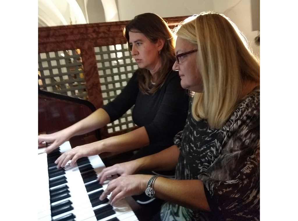 Mirta Kudrna diplomirala je orgulje na Akademiji za glazbu u Ljubljani, u klasi prof. H. Berganta. Tijekom studija nastupala je solistički i u komornim sastavima te brojnim orguljaškim natjecanjima u zemlji i inozemstvu, a usavršavala se na brojnim seminarima u Austriji, Španjolskoj, Danskoj. Elizabeta Zalović diplomirala je teoriju glazbe i orgulje u klasi dr. art. Lj. Očić na Muzičkoj akademiji Sveučilišta u Zagrebu, piše ika. Nakon studija nastupala je solistički i u komornim sastavima te brojnim orguljaškim natjecanjima u nas i inozemstvu: Muzički biennale Zagreb; Dani hrvatske glazbe; Međunarodni festival suvremene glazbe Tieste Prima (Italija); ciklus Svjetski orguljaši (Moskva, Rusija). Praizvela je i brojna djela hrvatskih autora. Obje su umjetnice izvanredne profesorice na Institutu za crkvenu glazbu KBF-a u Zagrebu.
