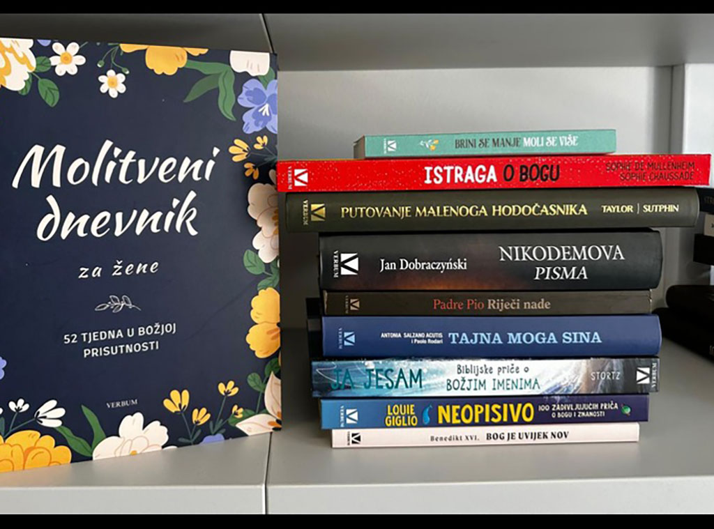 Prvo mjesto zauzima knjiga Brini se manje, moli se više. Riječ je o knjizi koja sadrži 180 kratkih i poticajnih meditativno molitvenih tekstova za žene za život bez tjeskobe prikladnih za sve životne situacije i poteškoće. Bilo da si zabrinuta zbog posla, obiteljskih i međuljudskih odnosa, financija, događanja u svijetu ili nečega drugog, ove će ti meditacije pomoći u otklanjanju tjeskobnih misli, učeći te pritom življenju u slobodi svemogućega Boga.