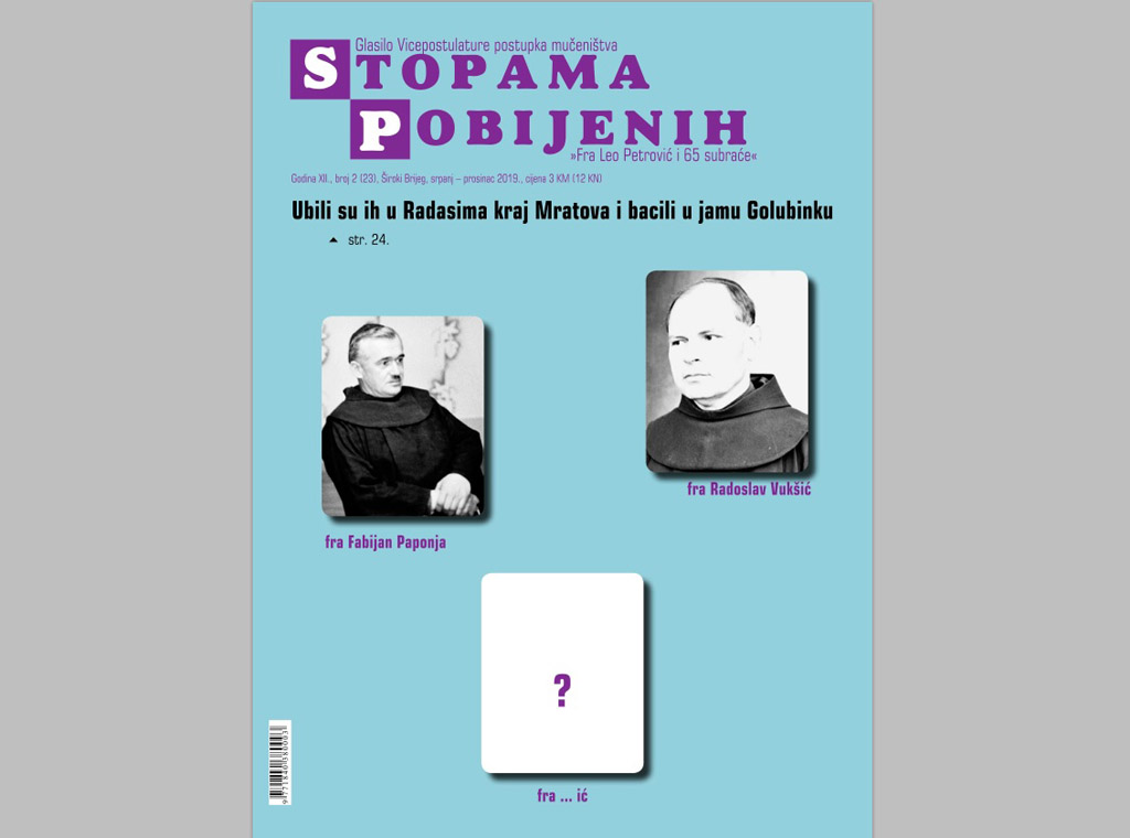 U izdanju Vicepostulature postupka mučeništva "Fra Leo Petrović i 65 subraće" izišao je novi broj glasila kojeg ova institucija izdaje dvaput godišnje.