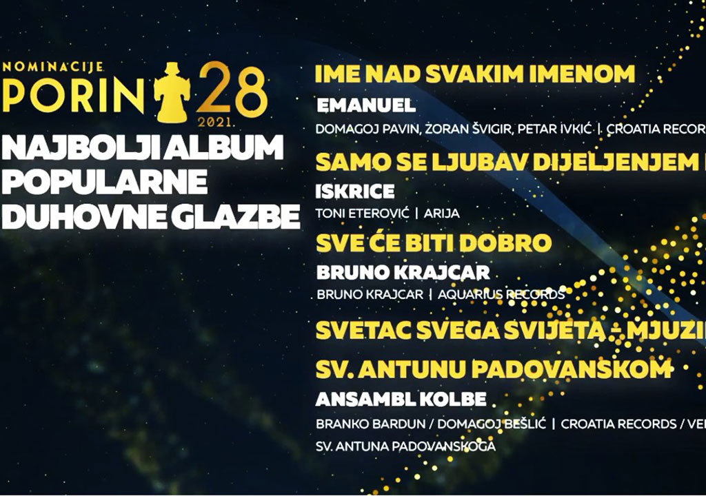 Za najbolji album popularne duhovne glazbe nominirani su albumi Ime nad svakim Imenom glazbenog sastava Emanuel, Samo se ljubav dijeljenjem množi Dječjeg zbora Iskrice, Sve će biti dobro izvođača Brune Krajcara i Svetac svega svijeta – Mjuzikl o sv. Antunu Padovanskom Ansambla Kolbe, prenosi IKA.