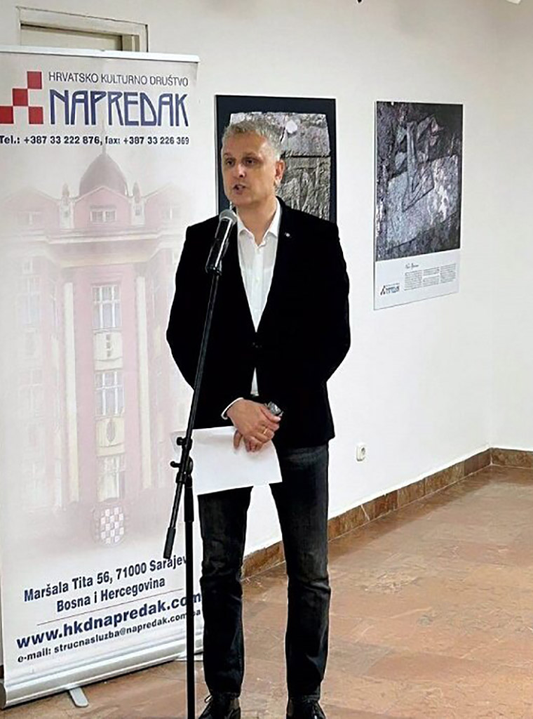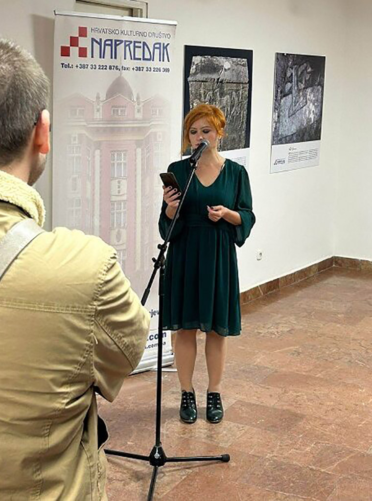 Nazočnima se na samom početku obratila i poželjela im srdačnu dobrodošlicu u ime Muzeja književnosti i pozorišne umjetnosti BiH direktorica Šejla Šehabović. Ona je objasnila kako je riječ o izložbi na kojoj su predstavljene umjetničke fotografije stećaka s lokaliteta pod zaštitom UNESCO-a na području Bosne i Hercegovine i Hrvatske. Izložba je svoje putovanje započela u Mostaru u proljeće 2021. Napretkovom tjednu kulture, nakon čega je bila predstavljena u Fojnicu, Muzeju Žitomislić, Vitezu, Novom Travniku i Širokom Brijegu.