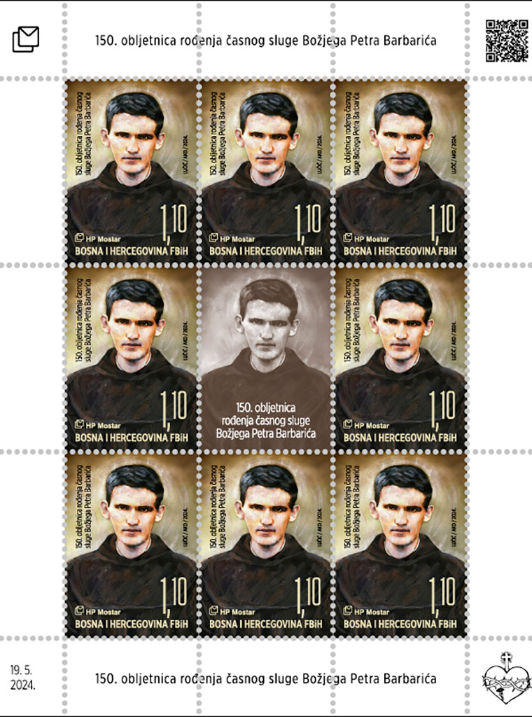 Hrvatska pošta (HP) Mostar tiskala je prigodne poštanske marke u povodu 150. obljetnice rođenja časnog sluge Božjega Petra Barbarića.
