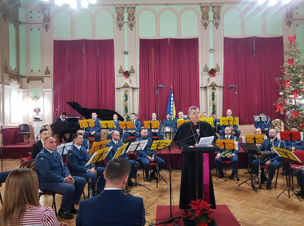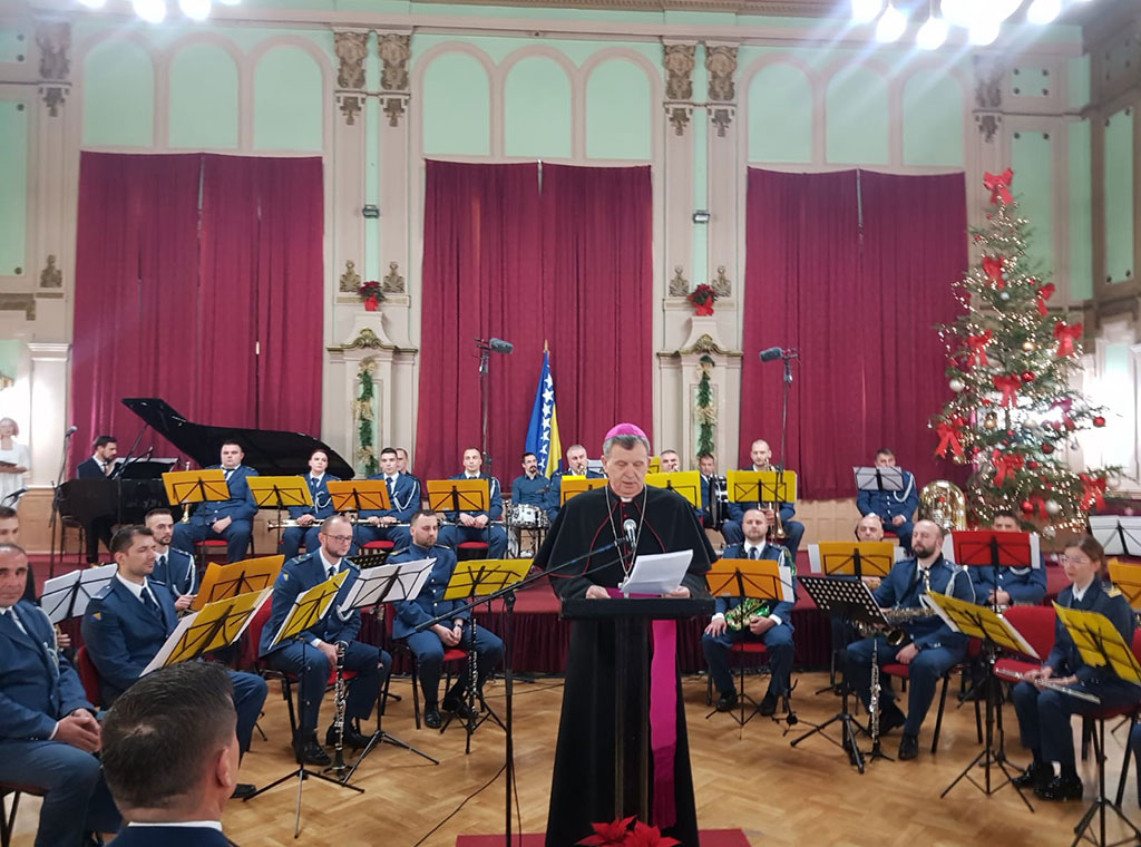 U svom pozdravnom govoru vrhbosanski nadbiskup metropolita i apostolski upravitelj vojnog ordinarijata u BiH mons. Tomo Vukšić izrazio je radost jer su se prilike, nakon problema s pandemijom, vratile u skoro normalno stanje pa je bilo moguće da, u skladu s lijepom tradicijom, Ministarstvo obrane i Vojni ordinarijat u svečanoj dvorani Doma Oružanih snaga u predbožićno vrijeme opet prirede koncert s publikom.