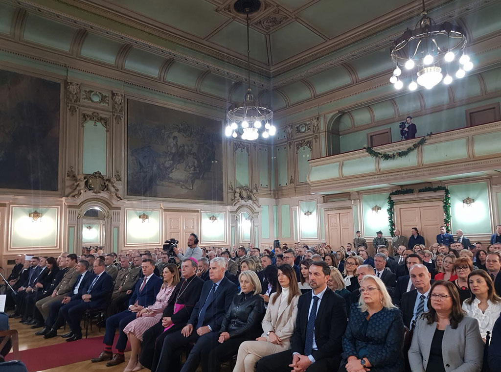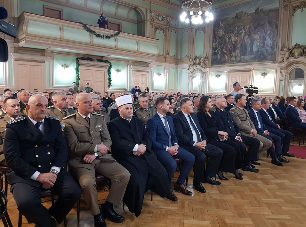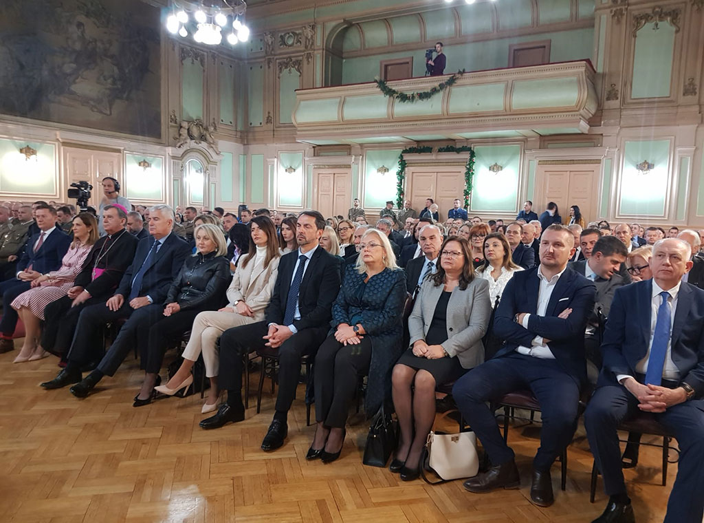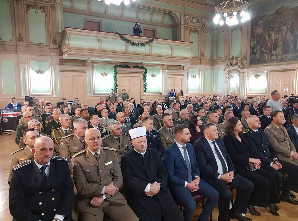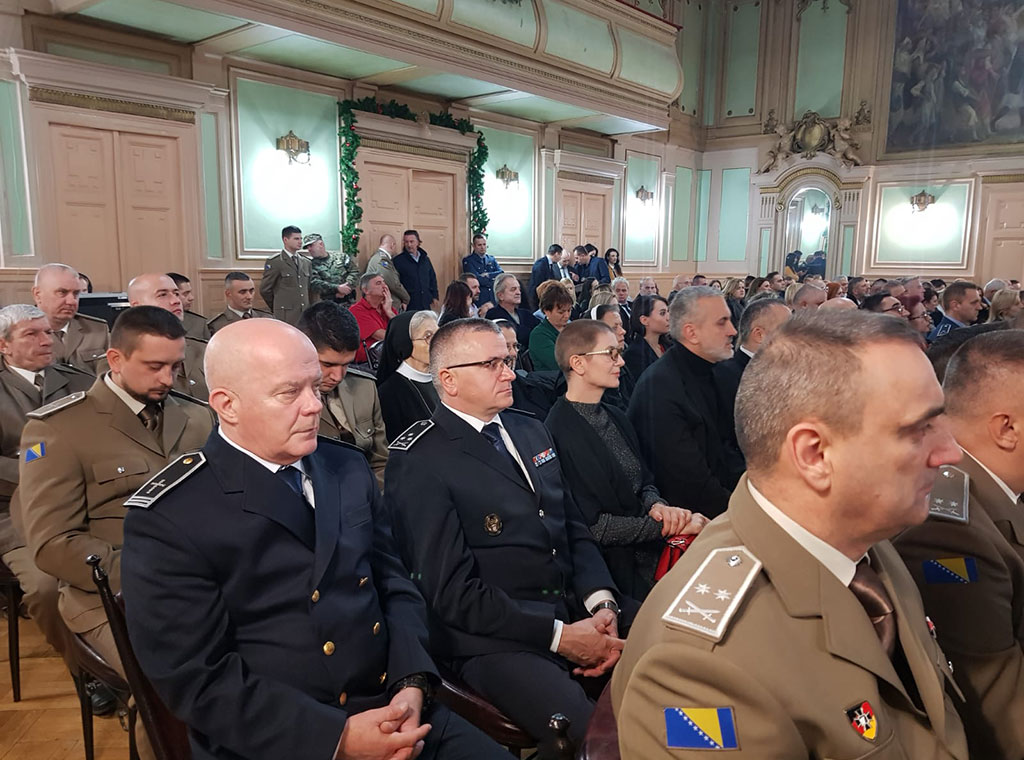 Među brojnim uzvanicima u svečanoj dvorani Doma Oružanih snaga bili su nazočni predstavnici vojnog, političkog, kulturnog i vjerskog života u BiH, koje je kroz prigodni glazbeni program vodila Anela Križanac.