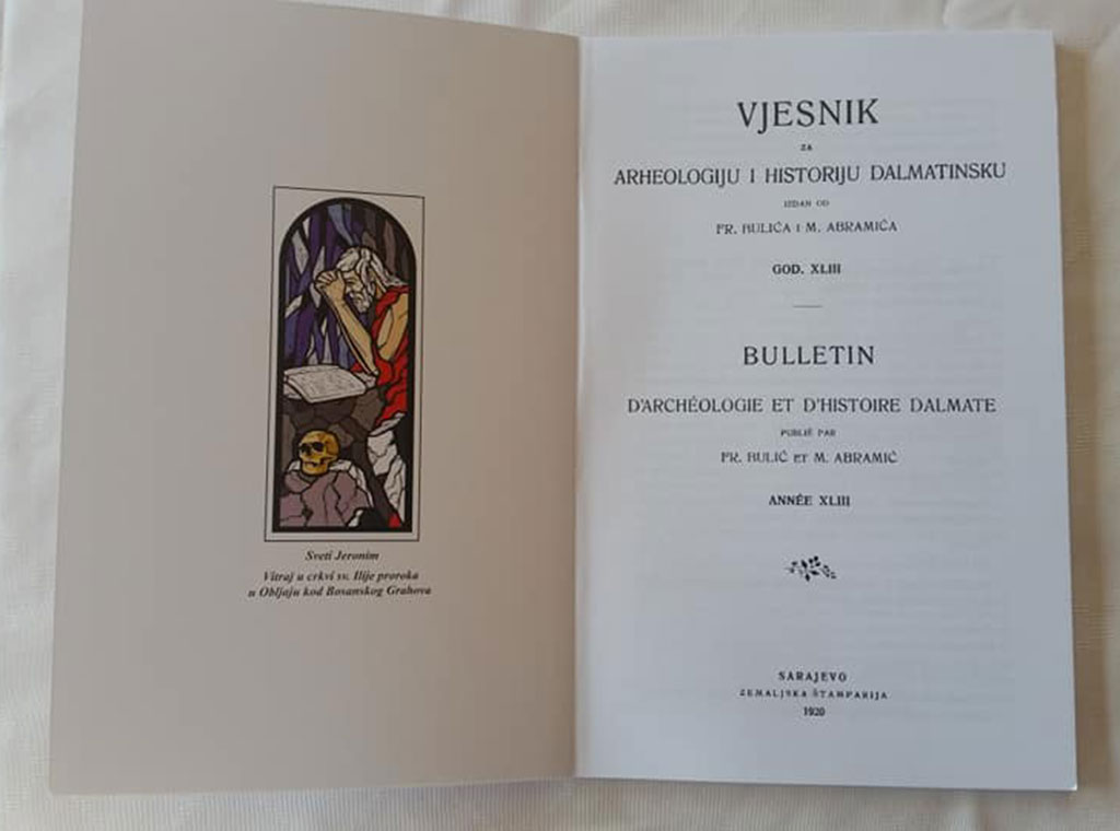 Riječ je o djelu naziva Stridon (Grahovo polje u Bosni) – rodno mjesto Svetog Jeronima; Rasprava geografsko-povijesna koje je izvorno objavljeno kao poseban otisak iz Vjesnika za arheologiju i historiju dalmatinsku, a tiskano 1920. u Zemaljskoj tiskari u Sarajevu.