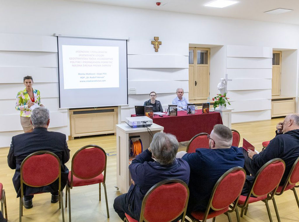 Nova knjiga Blanke Matković i Stipe Pilića „Jasenovac i poslijeratni jasenovački logori - Geostrateška točka velikosrpske politike i propagandni pokretač njezina širenja prema zapadu“ predstavljana je u petak 24. rujna u Dvorani Sv. Ivana Pavla II. u sisačkom Velikom Kaptolu.