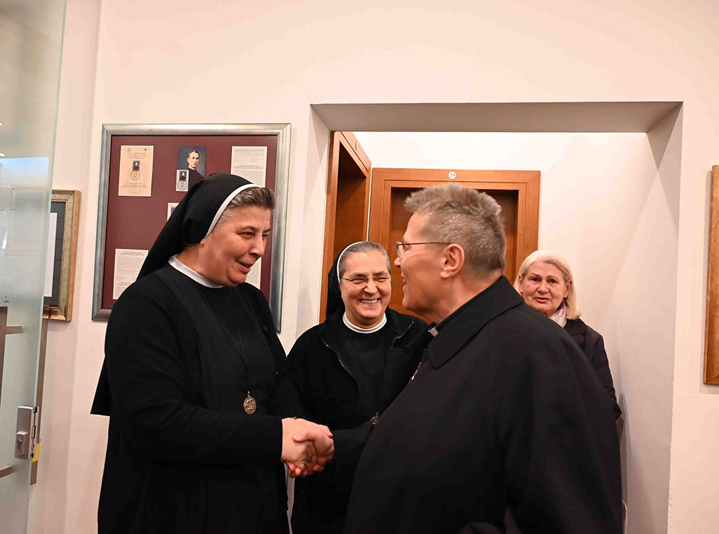 Pozdravu riječ uputila je na početku provincijalna glavarica Sarajevske provincije Služavki Maloga Isusa s. Ana Marija Kesten iskazavši svoju radost što će se te večeri prvi put u Stadlerovu spomen domu pričati priče od samoga početka njegova života, o njegovu djetinjstvu, mladosti, te putu života kojim ga je Gospodin vodio. Uime Služavki Maloga Isusa zahvalila je autorima tih dviju knjiga, mons. Ratku Periću i mons. Henryku Jagodzinskom, predstavljačima, đakovačko-osječkom nadbiskupu mons. Đuri Hraniću i dr. Snježani Mališa, moderatoru susreta vlč. Pavlu Madžareviću i svojim susestrama Služavkama Maloga Isusa, napose brodskoj kućnoj poglavarici s. Pavki Dujmović i voditeljici Stadlerova spomen prostora s. Marini Piljić, što su omogućili, kako je naglasila, da su zajedno mogli dijeliti radost te večeri posvećenoj sluzi Božjem Josipu Stadleru koja ih je uvela u obilježavanje 145. obljetnice njegova biskupskog posvećenja za Vrhbosansku nadbiskupiju.