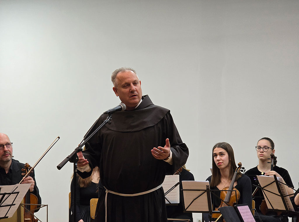 Riječi pozdrava uputio je i provincijal Franjevačke provincije Bosne Srebrene fra Zdravko Dadić koji je, u kontekstu preduskrsnog vremena, istaknuo kako je potrebno dosta muke i odricanja da bi se u čovjekovu životu dogodio Uskrs. „Mi ćemo večeras moći čuti i 'vidjeti' koliko je bio potrebno muke i odricanja da bi to sve zvučalo kako treba. To je pouka i nama: da ako hoćemo na kraju biti 'pjesma' koja će biti prihvatljiva Bogu, svoj život trebamo utrošiti za mir i za dobro. Mi franjevci zato i imamo taj slogan: 'Mir i dobro!' Graditi ovaj svijet, graditi svoj život – da bismo svjedočili ono što u Uskrsu proslavljamo: pobjedu života nad smrću“, rekao je provincijal čestitajući nadolazeću svetkovinu Uskrsa.