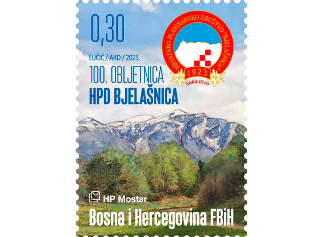 Hrvatska pošta (HP) Mostar tiskala je prigodnu poštansku marku u povodu 100. obljetnice HPD-a "Bjelašnica 1923" Sarajevo.