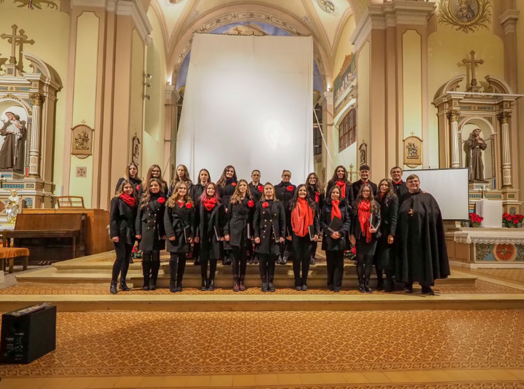 Zbor Adoro je nastao prije osam godina tako što je gospođa Marija Nedić, uz podršku tadašnjeg gvardijana fra Marijana Miće Živkovića, okupila grupu mladih željnih pjevanja duhovnih, ali i zabavnih pjesama. Zanimljivost ovog zbora je to što je sastavljen od prosvjetnih djelatnika i njihovih učenika iz srednjih škola. U zboru su od samog početka profesorice informatike, hrvatskog jezika, likovne kulture, fizike, razredne nastave te dva vjeroučitelja. Uz njih su uglavnom učenice srednjih škola koje po završetku školovanja odlaze na studij, a njihovo mjesto popunjavaju druge učenice. Tako je kroz zbor u ovih osam godina prodefiliralo jako puno mladih pjevača, piše bosnasrebrena.ba.