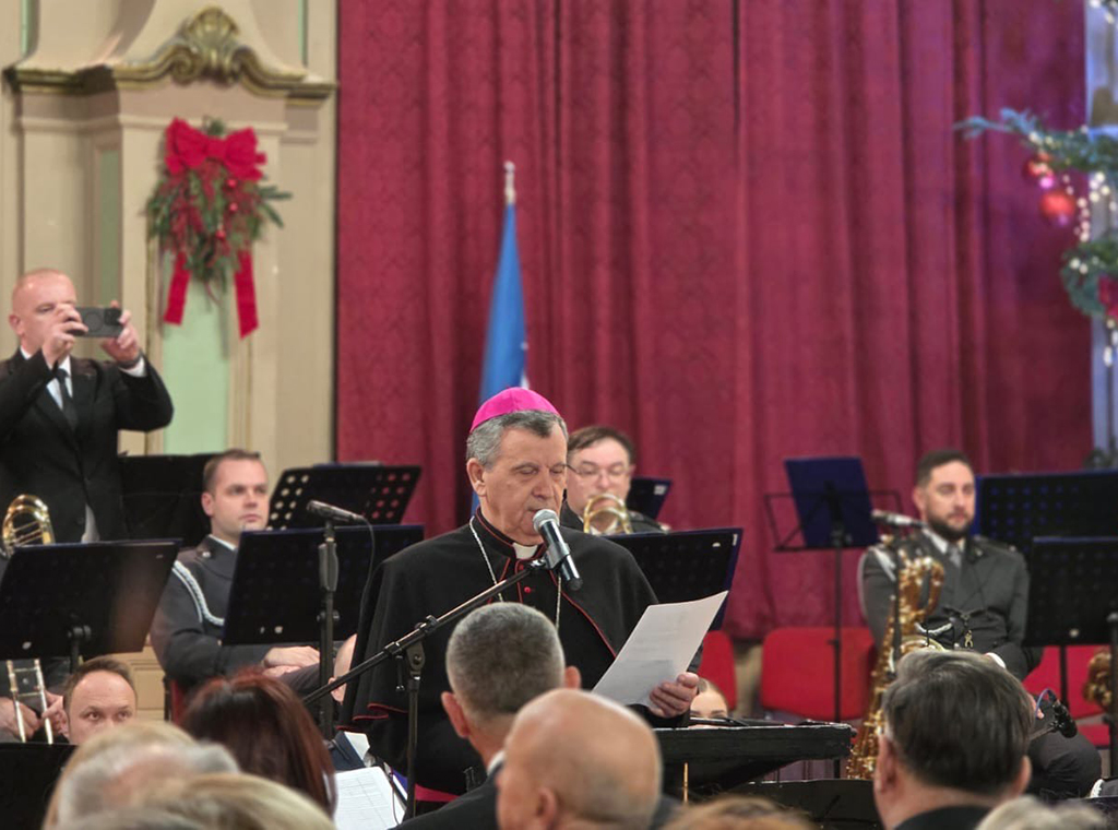 U svome obraćanju mons. Vukšić je katolicima uputio najljepše želje uz blagdan Božića, a svima zahvalio što svojom nazočnošću na ovom tradicionalnom događaju očituju prijateljstvo. Također, iskoristio je i prigodu da predstavi imenovanog Vojnog biskupa mons. Miru Relotu, OFM koji će sredinom veljače 2026. biti zaređen za Vojnog biskupa u BiH. Zaključno je izrekao molitvu i želje: „Molim Gospodina Boga da svim ljudima i narodima u BiH, a posebice osobama koje obnašaju javne službe, dodijeli dovoljno mudrosti i dobre volje da doprinesu da se ovo društvo oslobodi svakog oblika nepovjerenja i straha, da zavlada sloga, da raste odgovornost za javni govor, da ne moramo slušati teške riječi i prijetnje, da se gradi opće dobro i društvena sloga, da se poštuju prava svakoga čovjeka i svih konstitutivnih naroda, da zavlada politička korektnost bez manipulacija i nametanja predstavnika manjinskih zajednica, da nestane korupcija. I neka posvuda vladaju pravedni zakoni, etika i moral i na njima utemeljen trajan i pravedan mir.“