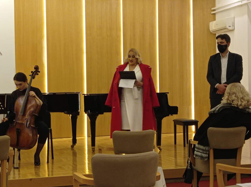 Kako je Anamarija Marić violinistica Napretkovog tria bila iz opravdanih razloga spriječena sudjelovati u koncertu, nju je zamijenila Sonja Vojvodić violinistica iz Banje Luke. Na to je ravnatelj Jovanić bio posebno ponosan jer je on,a uz čelisticu Lidija Paulin, bila učenica škole Vlado Milošević. Dodao je kako se nada da je ovo početak jedne uspješne suradnje između Napretkove podružnica i glazbene škole te pozvao predsjednicu Grozdić Ševariku da se obrati.