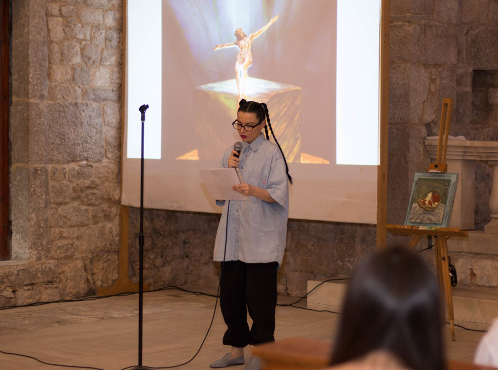 Dario Šimiće pročitao je prigodan tekst Maria Bušića za ovu izložbu, a tiskan je i poseban katalog kojeg su prisutni mogli uzeti sa sobom.