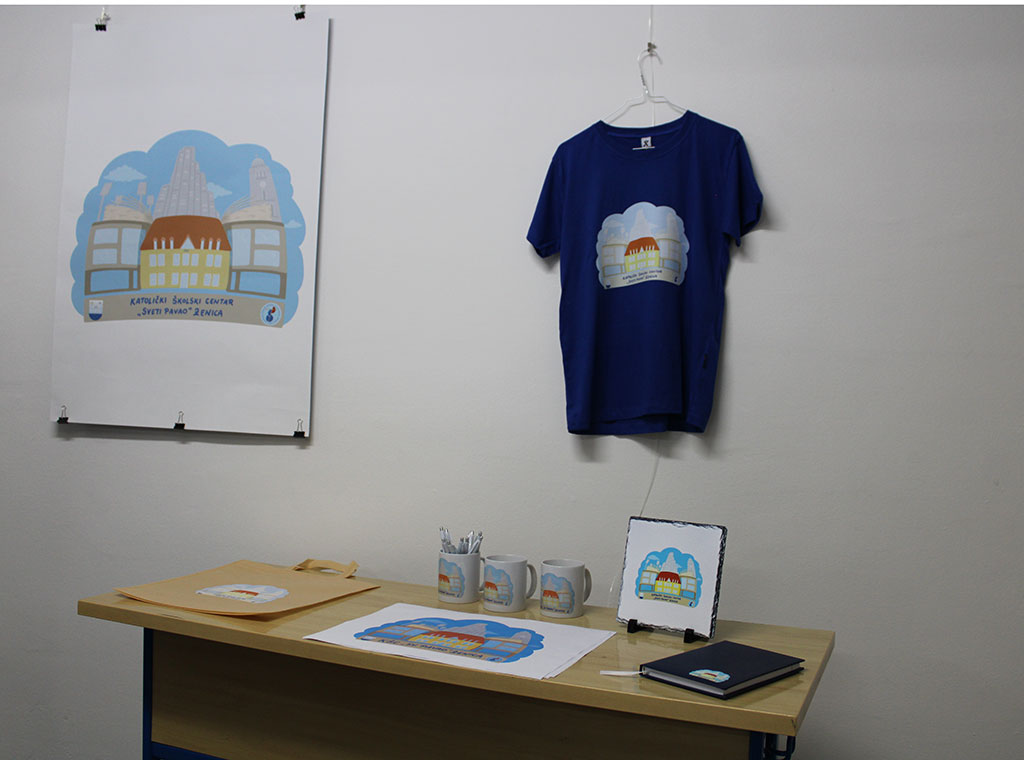 Inače, suradnja zeničkoga KŠC-a Sv. Pavao s ovim akademskim umjetnikom, na poticaj knjižničarke škole Darije Gelić, ogledala se najprije u tome što je Zdravko Cvjetković angažiran napraviti ilustraciju škole na malo razigraniji način. Zamišljeno je da taj rad obuhvaća već postojeće elemente zgrade i prepoznatljivih elemenata, kao i prostorni kontekst u kojem se škola nalazi: crkvu Sv. Ilije, stadion Bilino polje i zgradu Lamele. Osim izrade reprodukcija, cilj je bio tu ilustraciju škole moći prenositi na razne promotivne materijale poput rokovnika, kalendara, šalica, kemijskih olovki itd. koji bi se onda dijelili prijateljima Centra i nagrađenim učenicima.