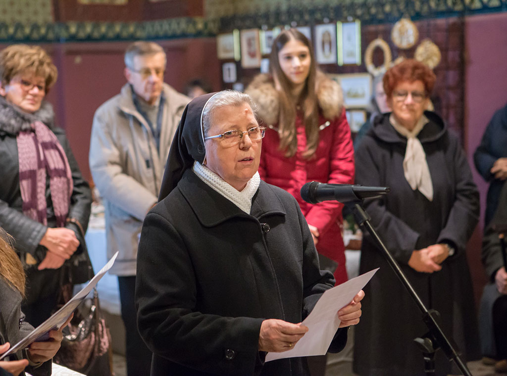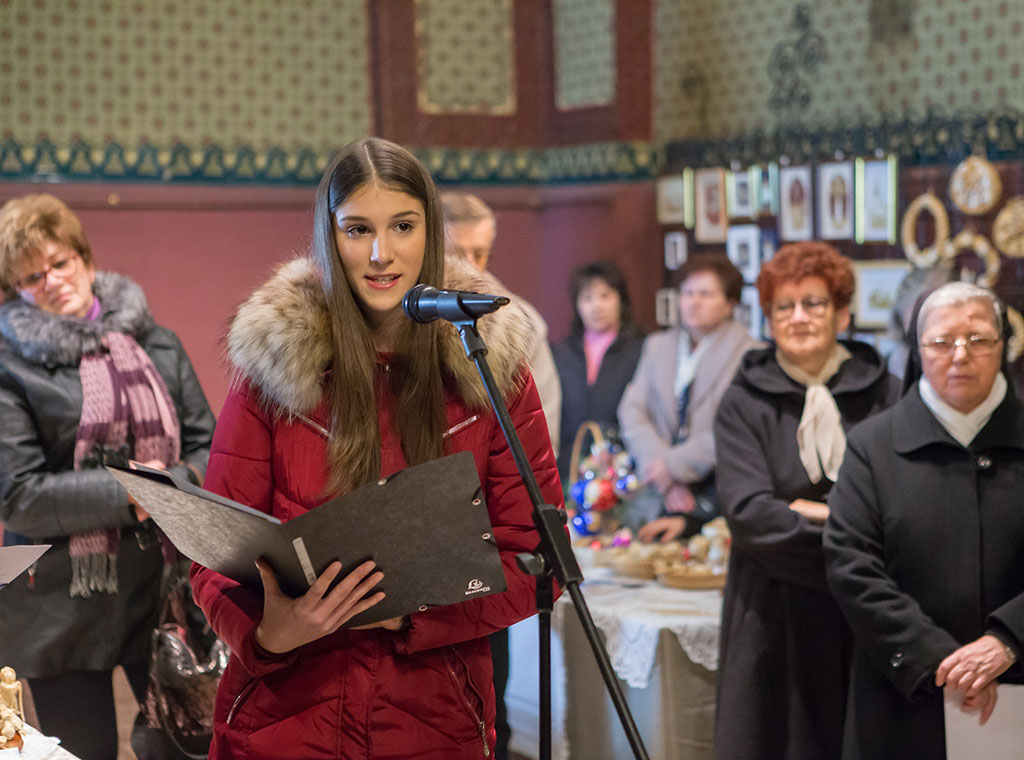 Izložbu je otvorila s. Silvana Milan, iz Družbe kćeri milosrđa, koja slavi 100 godina postojanja. Sestra je u obraćanju naglasila kako je utemeljiteljica Družbe kćeri milosrđa Bl. Marija Petković posebno častila malog Isusa i tu ljubav je usadila i svojim kćerima. „Mali Isus, Bog – Božić postao je čovjekom, nama u svemu jednak osim u grijehu. Tu Isusovu ljubav večeras gledamo i u ovim prekrasnim božićnjacima koji tako vjerno dočaravaju Njegovo rođenje, i to rođenje u obitelji Marije i Josipa iz Nazareta. U svakom božićnjaku, a osobito u figurama na njima, prepoznaje se vaša ljubav prema svetoj obitelji, prema Isusu, Mariji i Josipu. Na svakom izloženom božićnjaku prepoznaje se božićna radost vaše obitelji. U ovdje izloženim božićnjacima prepoznajem i ljubav bunjevačkih Hrvata prema malom Isusu u kojem gledamo spasitelja svijeta i otkupitelja čovjeka, ali i ljubav prema našim divnim božićnim običajima. Božićnjaci su kruh, poseban kruh - kolač, koji nam je posebno drag i sladak za Božić. Neka nas on podsjeti na Isusa, Kruh života, koji se daje za život svijeta i koji na poziva da ga prepoznamo u svim našim svagdašnjim prilikama, susretima, radostima i tugama, a najbliži nam je na svakoj svetoj misi, a osobito na misi polnoćki, na kojoj uvijek iskusimo posebnu milinu Božje blizine i radost našeg kršćanskog i ljudskog zajedništva“, kazala je.