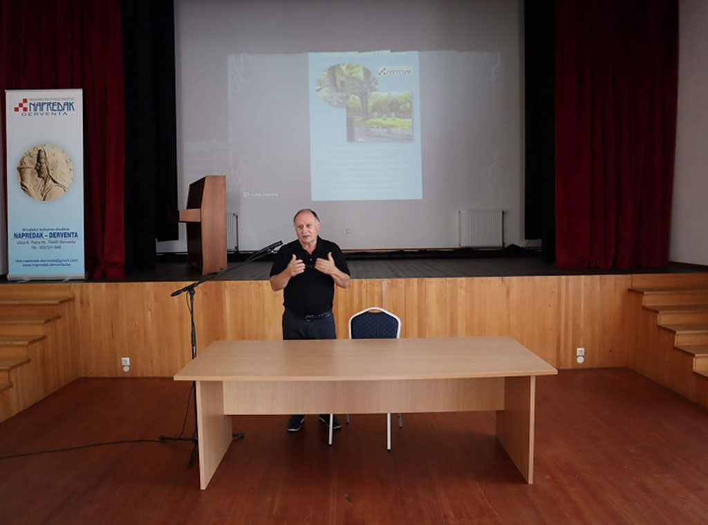 Prezentaciju je održao predsjednik Hrvatskog kulturnog društva Napredak Derventa fra Mirko Filipović koji je kroz prikupljene fotografije svake faze radova na nekropoli zorno pokazao prisutnim članovima i gostima što je sve rađeno kako bi se ovaj spomenik kulture iz potpuno zapuštenog stanja doveo do razine vrijedne pokazivanja turistima.