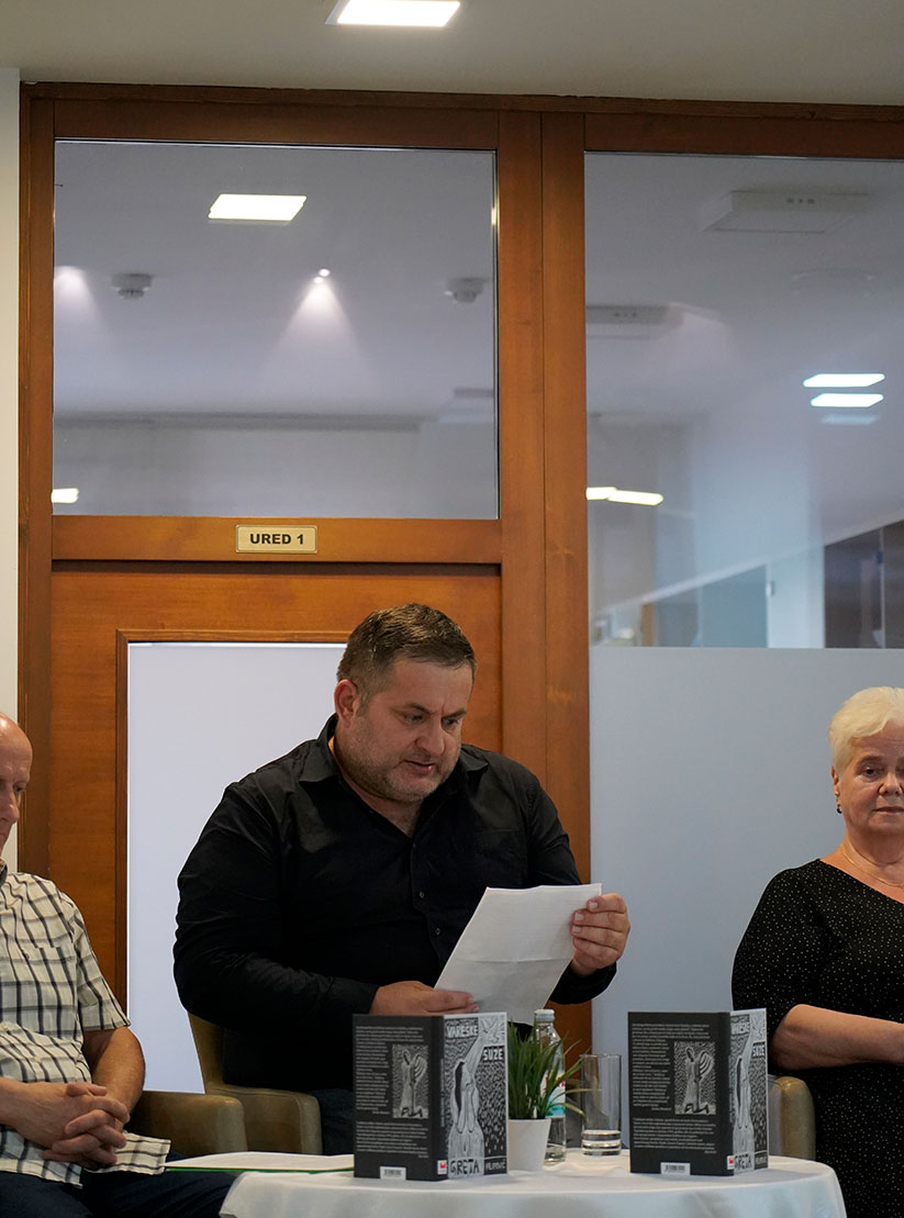 Prvi od predstavljača obratio se Vrbić koji je donio osobni osvrt na susret s autoricom i njezinom teškom životnom pričom. „Živimo u svijetu gdje volimo jednostavne stvari, stvari s happy endom, s nekim sretnim završetkom. Hvala Bogu i ovaj je jedan od takvih, ja ću reći, i zato mi je drago da se večeras vidimo i čujemo jedno svjedočanstvo koje će sigurno svakog od nas dirnuti (…) Prebitno je napomenuti da Greta jasno razlikuje i razdvaja počinitelje zločina nad njom od naroda iz kojeg dolaze. Kad budete čitali knjigu to ćete uočiti na bezbroj mjesta“, naglasio je Brane Vrbić.