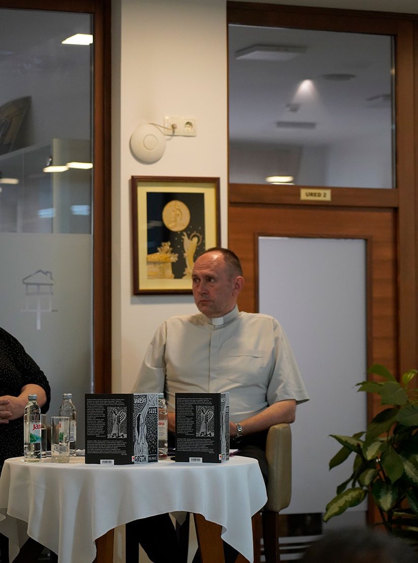 Potom je o knjizi progovorio preč. Orkić naglasivši kako njihovim predstavljanjem zapravo nazočnima daju jedan mali prozor kojim će proviriti u knjigu, a onda ju zatim, kako se nada, i pročitati. „Ono što je zlo prema Greti htjelo učiniti jest zadati strah i uništiti ju (…) trebali bismo i u radostima i u žalostima biti bliski. Najviše bole one neisplakane suze, a takvih je u Varešu bilo puno (…) O neisplakanim suzama se ne govori i ne piše, poneki pjesnik možda nešto napiše… No, jedna se žena odvažila napisati, ispričati priču o neisplakanim suzama“, kazao je uz ostalo preč. Ilija.