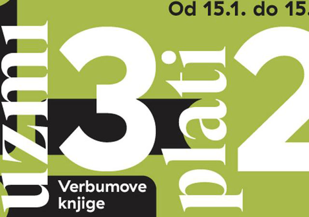 Nakladna kuća Verbum od 15. siječnja do 15. veljače u svim knjižarama Verbum i na web knjižari organizira prodajnu akciju "Uzmi 3 - plati 2".