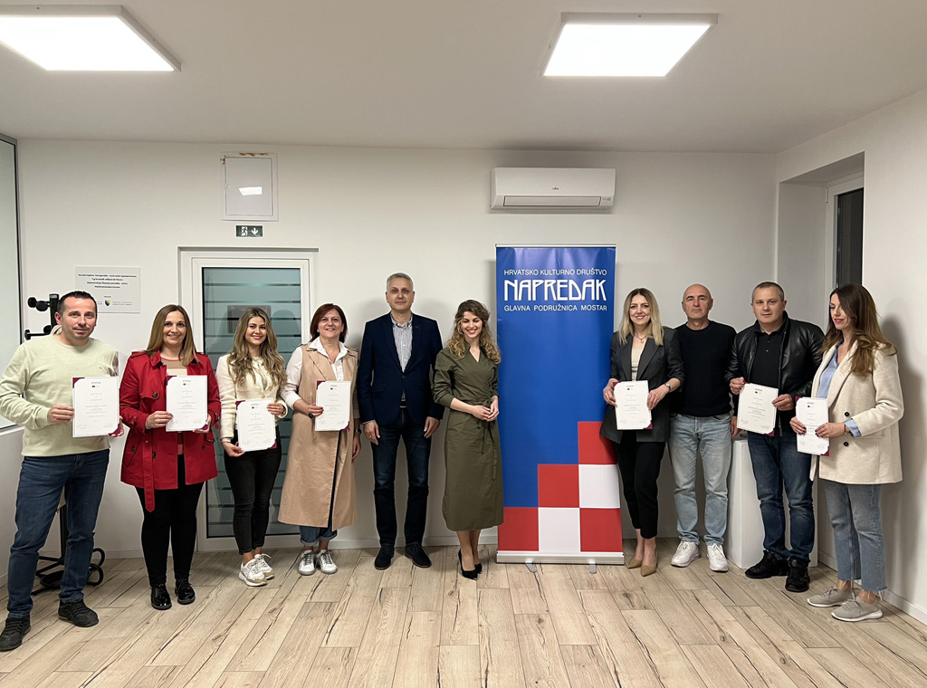 Predsjednik HKD-a Napredak Glavna podružnice Mostar Miroslav Landeka zahvalio je profesorici engleskog jezika i književnosti Andrei Biško na uspješnom vođenju tečaja. Također, zahvalio je susretljivom vodstvu i djelatnicima Narodne knjižnice HNŽ-a i Hrvatskog doma hercega Stjepana Kosače koji su ustupili na korištenje svoje prostorije. Dodao je na kraju kako je znanje stranih jezika postalo dio opće kulture, a učenje stranog jezika samo zbog hobija je rijetkost.