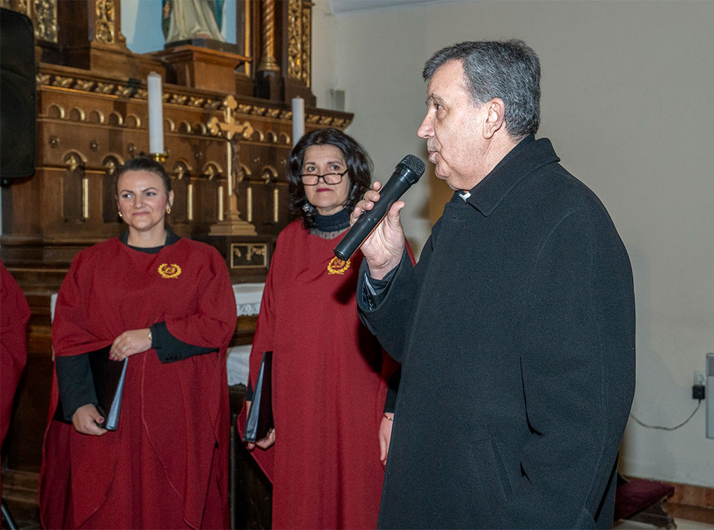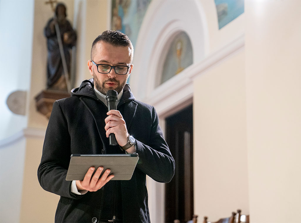 Okupljene u crkvi u Novom Sarajevu, njih 60-ak, prije koncerta u svojstvu domaćina pozdravio je župnik vlč. Dražen Kustura, glasnogovornik Vrhbosanske nadbiskupije. Najprije je podsjetio na misli pape Franje upućene glazbenicima sredinom prosinca 2023. kada ih je susreo u Vatikanu te im tom prigodom poručio kako je glazba poziv i put do mira. „Vođeni tim mislima i mi živimo ovo korizmeno vrijeme kako bismo u miru s Bogom i s našim bližnjima dočekali najveću kršćansku svetkovinu – Uskrs. U toj pripravi osim konkretnih odricanja kojima vježbamo svoje tijelo važno je i ono čime hranimo svoj duh. Korizmene skladbe i pjesme pomažu nam za bolje razumijevanje otajstva Kristove muke, smrti i uskrsnuća kako svoj pogled ne bi zadržali samo na Velikom petku i križu, nego kako bismo s nadom, vjerom i pouzdanjem iščekivali nedjelju uskrsnuća. Stoga večerašnji koncert trebamo promatrati najprije kao jednu korizmenu duhovnu obnovu koja će nam pomoći poštovati život, stvarati duh zajedništva, osjetiti Božju blizinu i koja nam otvara mogućnost za susret s našim bližnjima“, istaknuo je vlč. Kustura uz izraze zahvale izvođačima i svima koji su pomogli organizaciju koncerta.