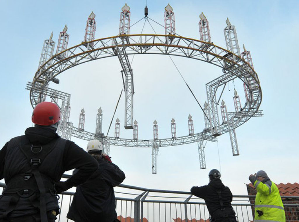Na starom vodotornju iz 1905. postavljen je već osmu godinu za redom adventski vijenac izrađen od aluminija, širok 13 metara i težak 1 500 kilograma.
