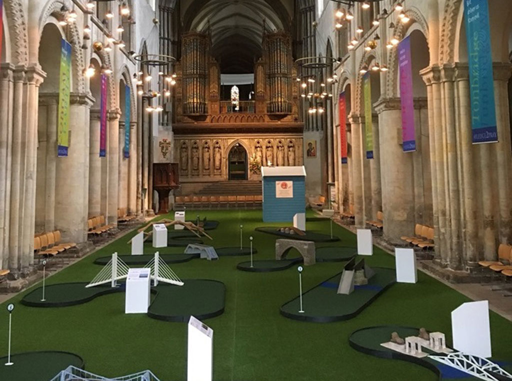 Tako je ova srednjovjekovna katedrala, u kojoj je služio i sveti John Fischer prije nego što ga je Henrik VIII. dao pogubiti, dobila devet “rupa” za mini-golf. Svaka “rupa” je tematizirana jednim mostom uz koji se nalazi ploča s informacijama o pojedinom mostu. Očekivano, mnogi su reagirali sa zgražanjem na ovu instalaciju u znamenitoj katedrali.