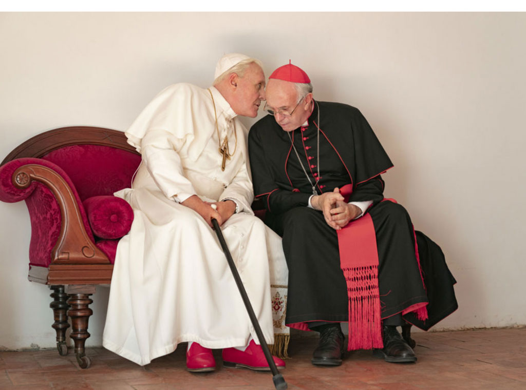 Film koji će se uskoro pojaviti u kinima nadahnut je stvarnim događajima, naveo je distributer Netflix objasnivši da Hopkins glumi papu Benedikta a Pryce kardinala Bergoglia.