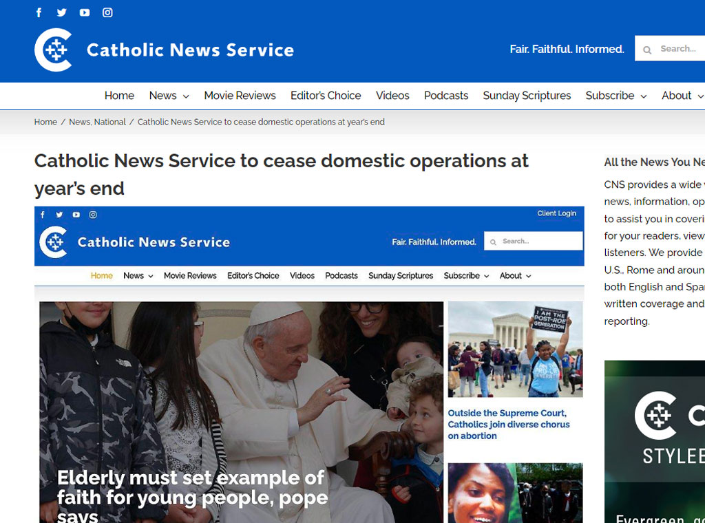 Inače, ovaj informativni servis datira iz 1920. godine. Dugo je pružao vijesti i druge medijske sadržaje desecima biskupijskih publikacija i drugih plaćenih pretplatnika diljem SAD-a. Sada će prestati opskrbljivati klijente 1. siječnja 2023. Istodobno, CNS-ova pokrivenost Rima bit će dostupna američkim biskupijama bez naknade.