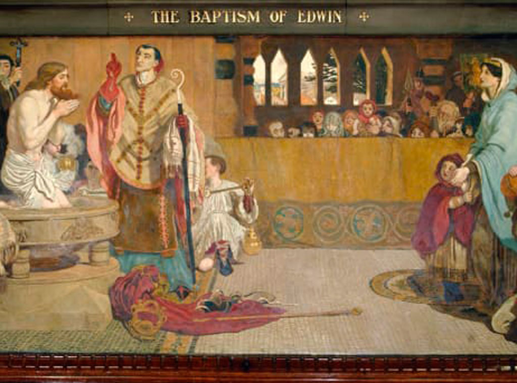 Sveti Edwin (vladao 616. – 633.) bio je kralj Deira i Bernicije – područja kasnije poznatih kao Northumbrija. Krstio se 627., nakon što ga je vjeri priveo jedan augustinski misionar. Pod Edwinom se zakon u zemlji tako vjerno poštovao da se govorilo kako „žena može proputovati otok dojeći dijete na prsima, bez straha da će joj netko uputiti uvredu“. Sveta Ethelburh utjecala je na Edwinovo obraćenje na kršćanstvo, budući da ga je ona upoznala s augustinskim misionarom. Njezin brak s Edwinom pokrenuo je prvu fazu obraćenja tada poganskog sjevera Engleske na kršćanstvo.