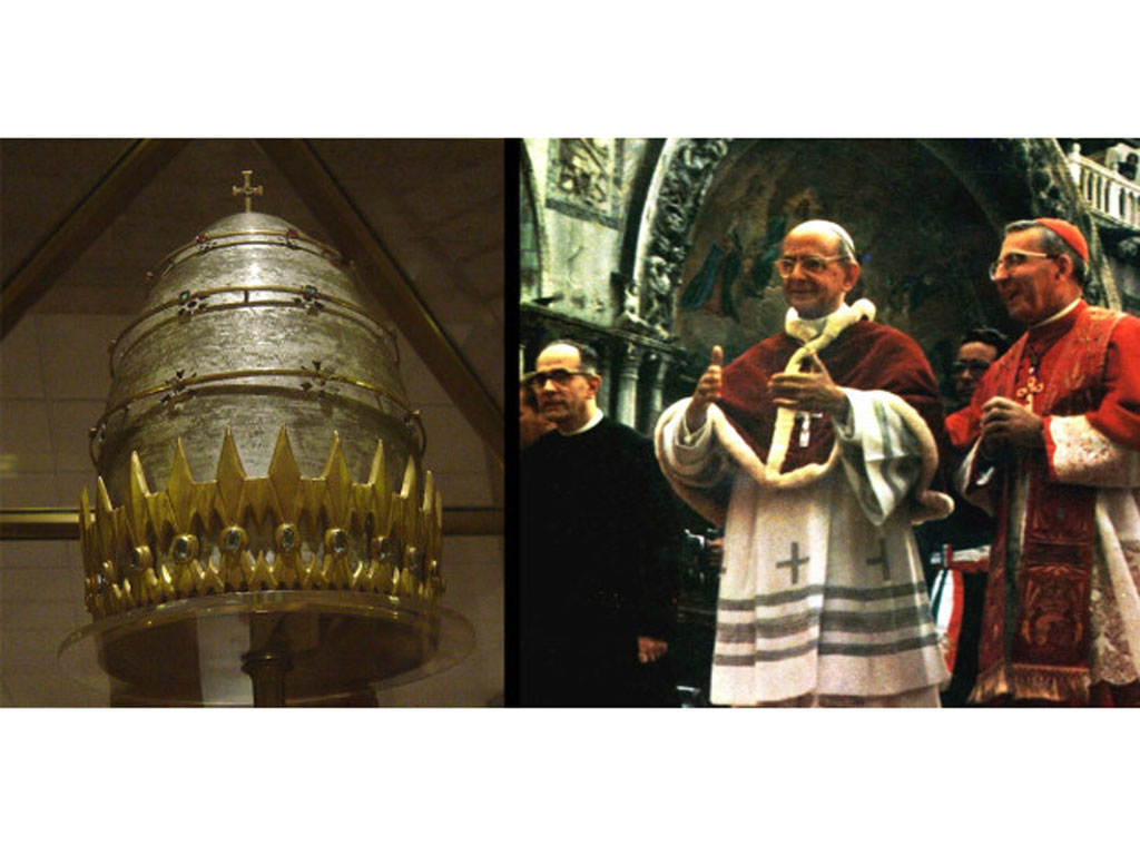 Tako je i Sv. Ivan Pavao II. u svojoj homiliji tijekom mise inauguracije podsjetio na odreknuće od tijare svog predšasnika i njegove želje da ga se slijedi: „Papa Ivan Pavao I., na koga je sjećanje još uvijek živo u našim srcima, nije želio nositi krunu – tako isto ne želi ni njegov nasljednik danas. Ovo nije vrijeme za vraćanje ceremonijama i stvarima smatranim pogrešnim, kao simbol vremenske moći pape.“