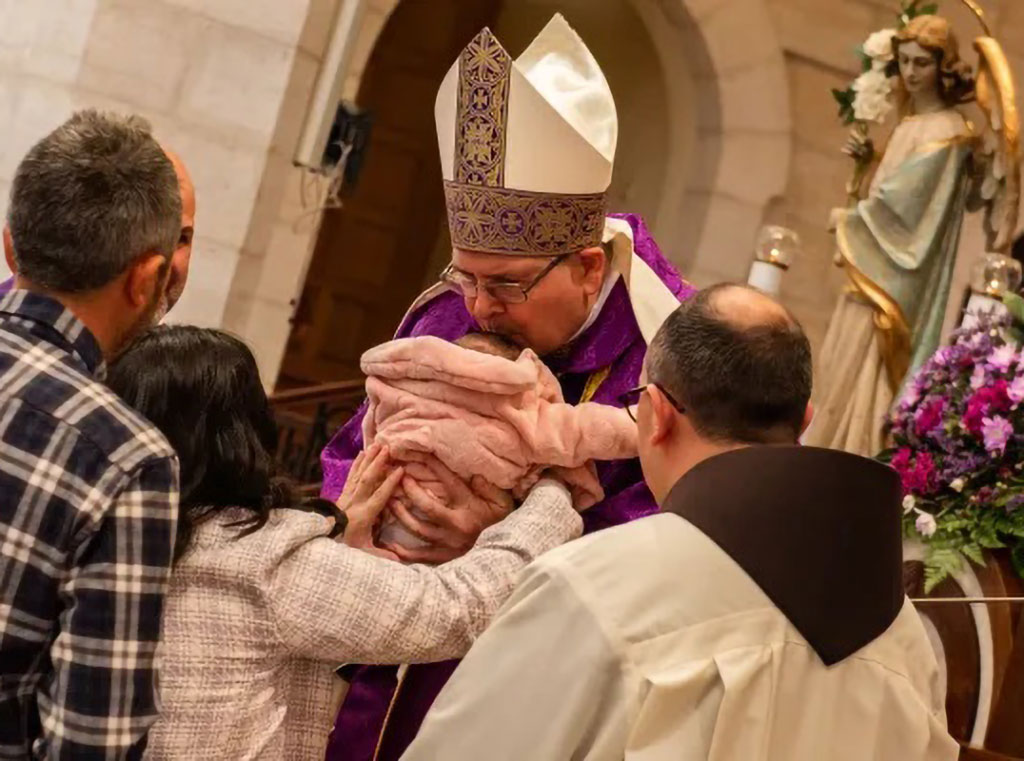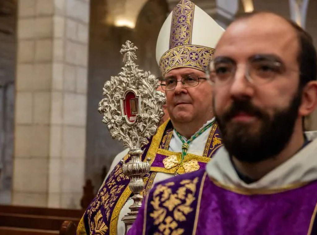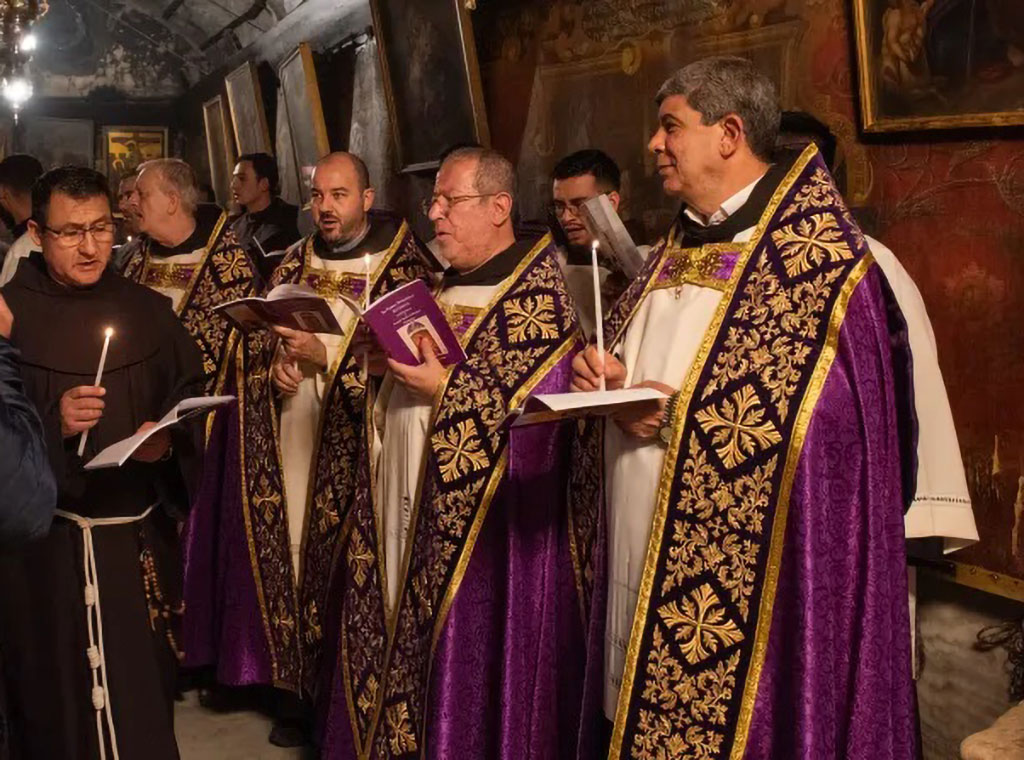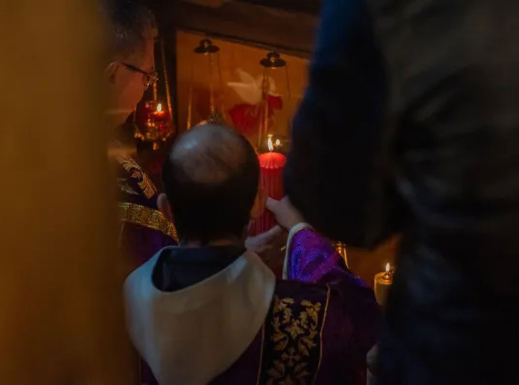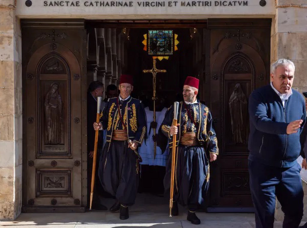 Kustos Svete zemlje ulazi u latinsku crkvu Sv. Katarine u Betlehemu, 2. prosinca, na prvu večernju došašća. Nosi relikviju svete kolijevke Djeteta Isusa, koju je papa Franjo darovao Kustodiji Svete zemlje 2019.