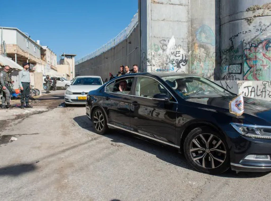 Kolona vozila ušla je u Betlehem kroz vrata koja su bila otvorena za tu priliku, a potom je prošla kroz ulaz u pregradnom zidu na mjestu Rahelina groba. Ovdje Židovi štuju mjesto ukopa matrijarhije židovskog naroda. Ovo je mali pojas zemlje unutar Betlehema, pod izraelskom kontrolom, potpuno okružen zidom.