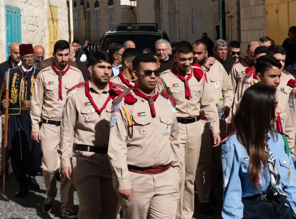 Procesija skauta – koja se obično sastoji od nekoliko stotina muškaraca, žena i djece iz cijele Palestine koji dolaze s kustosom – bila je svedena na malu skupinu, zvuci bubnjeva i gajdi ustupili su mjesto vjerničkoj tišini, a zastave su bile spuštene na pola koplja. Čak su i ulice i Trg jaslica – obično prepuni lokalnih vjernika i hodočasnika – bili prazni. Jedina nota radosti došla je od djece koledža Terra Sancta u Betlehemu, koji je pod upravom Svete zemlje, a koja su malu povorku pozdravila ovacijama i pljeskom.