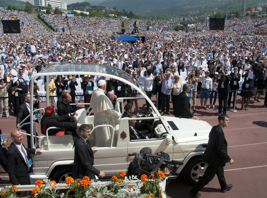 Osim sastanaka s vlastima, biskupima, svećenicima u katedrali, poglavarima drugih religija, s mladima, u maratonu zagrljaja i simboličkih gesta, vrhunac ovog posjeta bila je misa na sarajevskom stadionu pred više od 60 000 ljudi.