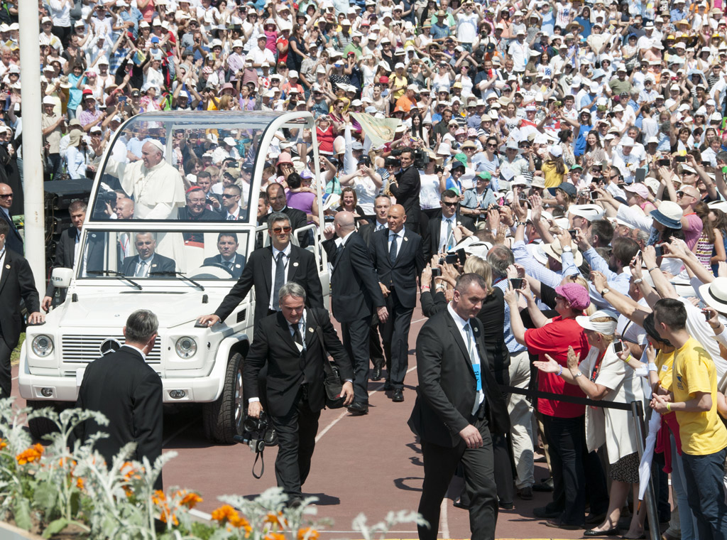 Dana 6. lipnja 2015. Papa je došao u Sarajevo, grad simbol rata od 1992. do 1995. Bilo je to njegovo jednodnevno apostolsko putovanje, ali potpuno u ime mira. Osamnaest godina poslije povijesnog posjeta Sv. Ivana Pavla II. grad je bio ponovno slavlju. Papu je dočekalo puno mladih i djece koji su željeli pokazati svoju kulturu, tradiciju, raznolikost i radost, ali i rane: zgrade, ulice i srca rastrgana bolnim sukobom.