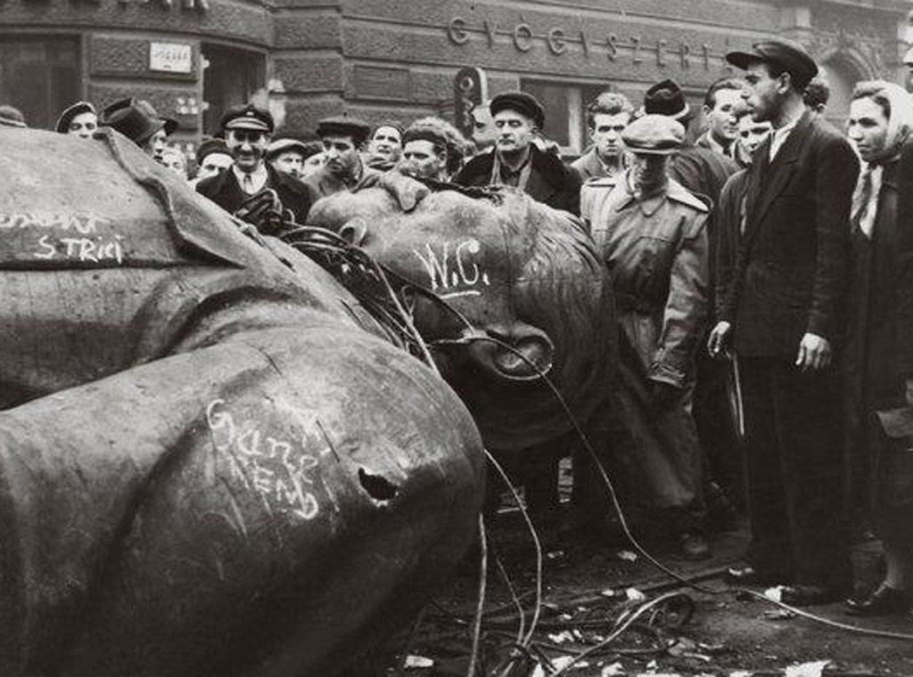 Mnoštvo je zapalilo cjelokupnu literaturu koja se nalazila u zgradi partijskog glasila, a posvuda u gradu počeli su se uništavati simboli komunizma. Još tijekom prvih dana prosvjeda rastavljen je Staljinov kip, simbol diktature, okupacije i strane komunističke vlasti.
